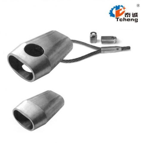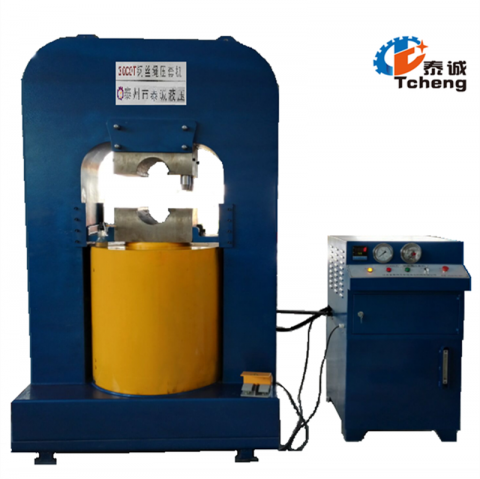 壓套機通過液壓為動力,結構緊湊、運行穩定、噪音小、工作效率高。在不破壞鋼絲強度的前提下使軟金屬在模腔內充分流動,束緊鋼絲繩的鋼絲,通過鋼絲之間摩擦力達到成型的目的。